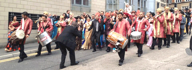 Bombay Baja are the UK’s Leading Indian wedding band and have been performing to wedding guests ever since they first formed in 1998. They usually lead the procession with the groom and the rest of the bharaat singing, clapping and dancing behind. Whether It’s a Sikh, Hindu, Muslim or Christian wedding, they guarantee to create a carnival atmosphere.